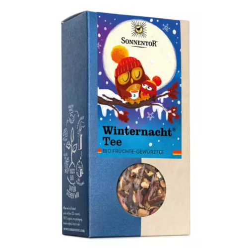 Bio-Früchte-Gewürzteemischung mit äth. Ölen aromatisiert. Der Winter macht den Tag zur Nacht. Wenn es draußen früher dunkel wird, brauchen wir diesen Lichtblick in der Teetasse. Zimt und Nelken bringen eine extra Prise Weihnachten in die Teemischung. Tipp: Mit frischen Früchten, Gewürzen und einem Schuss Sirup oder Rum wird sie zum Punsch für Groß und Klein. Huhu Winternacht!