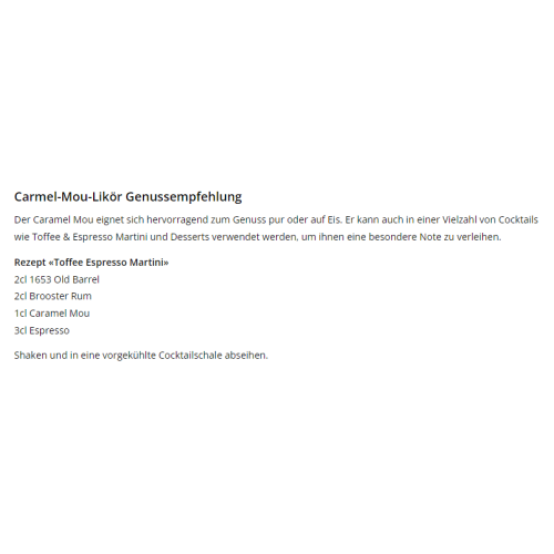 Lever de rideau sur notre liqueur Caramel-Mou, une édition spéciale limitée fermement ancrée dans la tradition de la distillerie Studer . Nous nous sommes inspirés de la recette originale du Caramel-Mou, élaborée il y a plus de 100 ans par la fabrique de liqueurs et de confiseries Studer . Il s'agit d'une liqueur qui réinterprète le goût bien connu du "Nidlezältli", mais qui porte indéniablement l'empreinte de Studer . Audacieuse ? Peut-être bien. Convaincante ? Absolument, oui. Faites-vous votre propre idée.